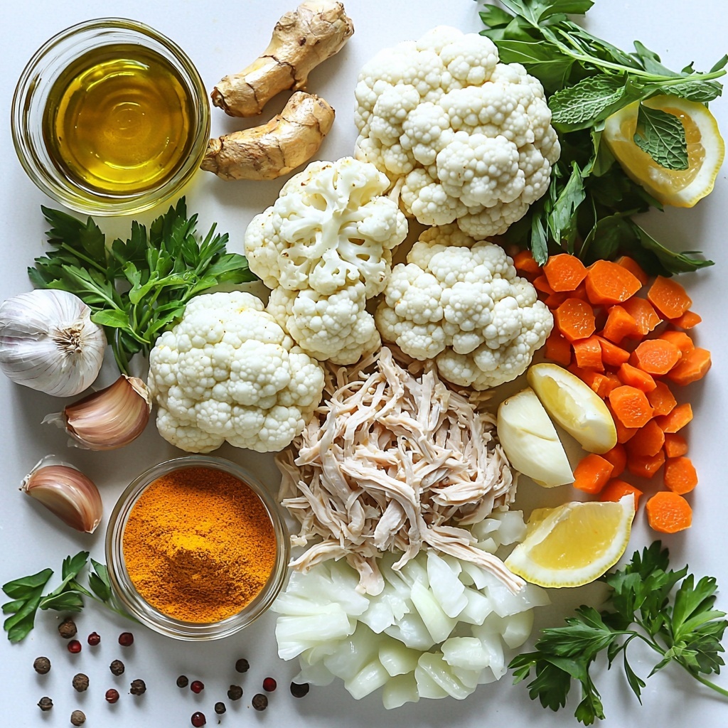 This Anti-Inflammatory Cauliflower Chicken Soup Recipe calls for simple yet powerful ingredients that come together to create a beautifully balanced dish. Each element plays a crucial role in building the soup’s rich layers of flavor, texture, and aroma.