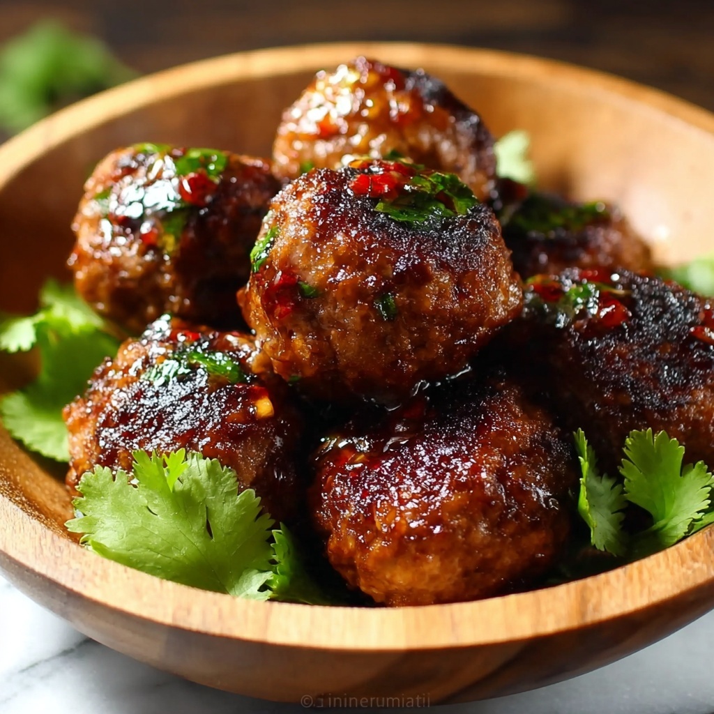 Fresh garnishes elevate simple dishes like these meatballs to something special. Sprinkle chopped cilantro or sliced green onions on top right before serving for a burst of color and fresh flavor that complements the richness perfectly. Toasted sesame seeds also add a delightful crunch and nutty aroma.