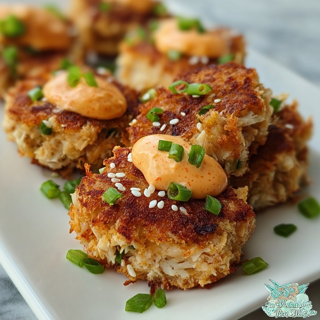 For an impressive twist, try presenting these cakes on a bed of mixed greens drizzled with a sesame vinaigrette, letting the spicy mayo act as a drizzle on top or a dipping sauce on the side. You can also serve them as sliders with soft buns and crunchy slaw for a fusion-inspired snack that will wow your guests.