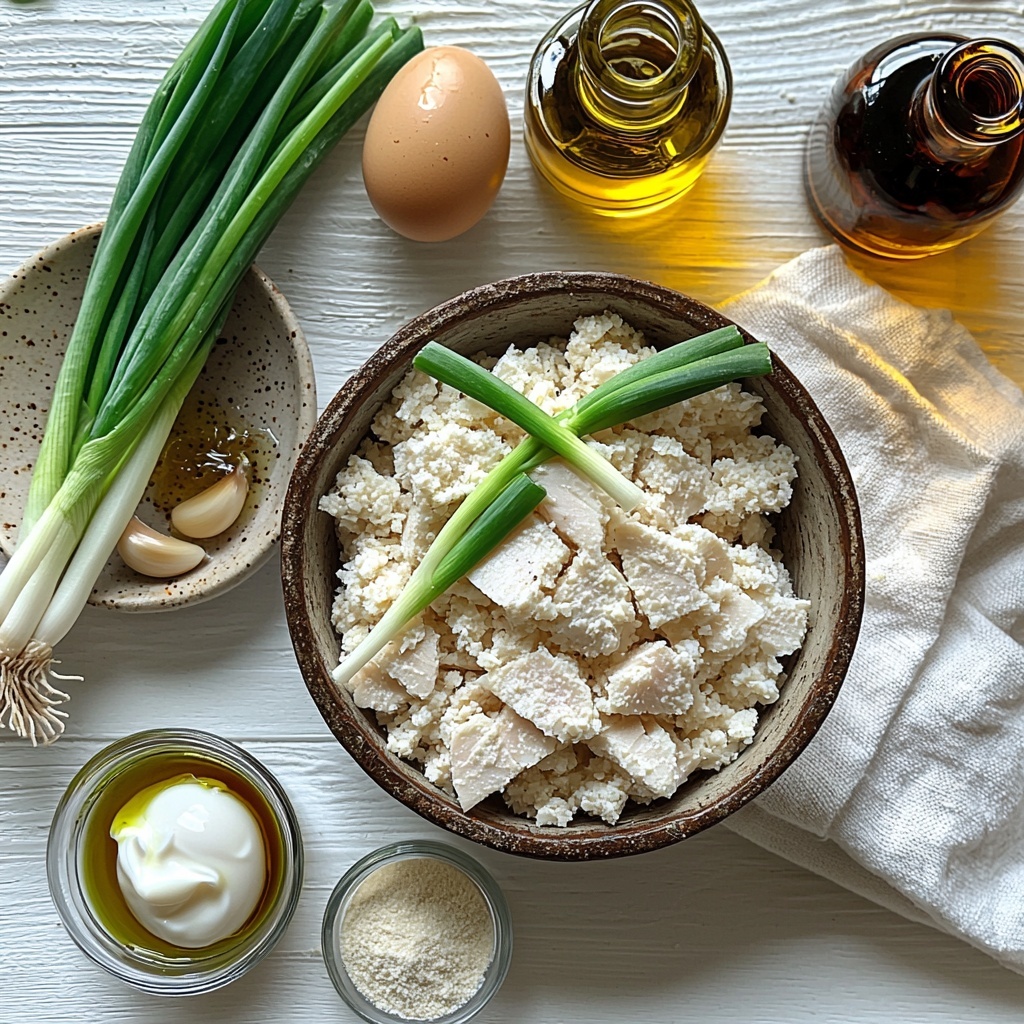 - Prepare the Tuna Mixture: In a mixing bowl, combine the drained tuna, the whites of the green onions, the egg, soy sauce, arrowroot powder, mayonnaise, minced garlic, and a sprinkle of salt and pepper. Mix thoroughly until all ingredients are well incorporated, forming a cohesive mixture.