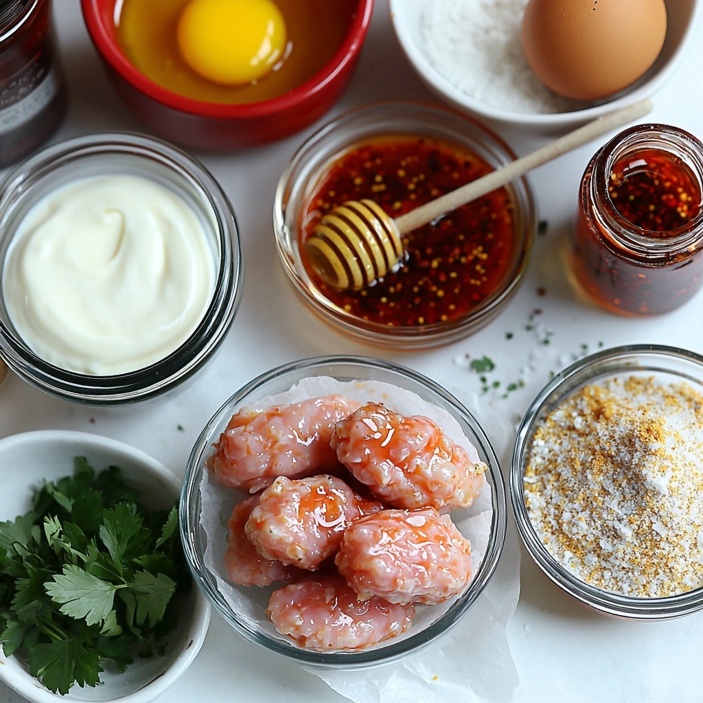 • 1 tbsp Sriracha sauce: Incorporated in the marinade for an extra layer of heat inside the coating.