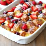 A delicious and easy berry croissant bake featuring flaky croissants soaked in a creamy custard with fresh strawberries, blueberries, and raspberries. Perfect for a cozy breakfast or brunch, this baked dish combines the buttery texture of croissants with a sweet and tangy berry topping, all enriched with cream cheese and vanilla.