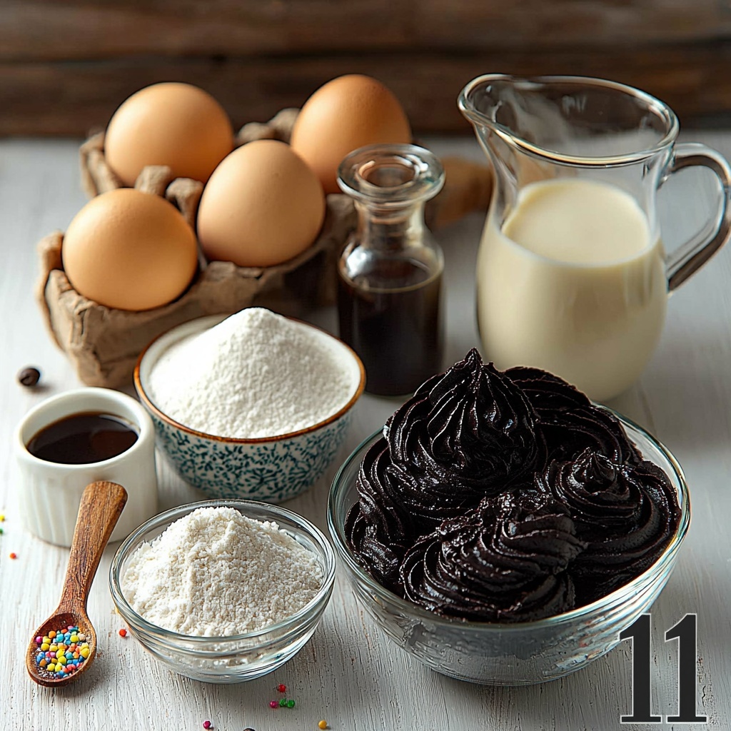 • 1/2 cup black cocoa powder: This is the star ingredient that gives the cupcakes their signature intense color and bold chocolate taste.