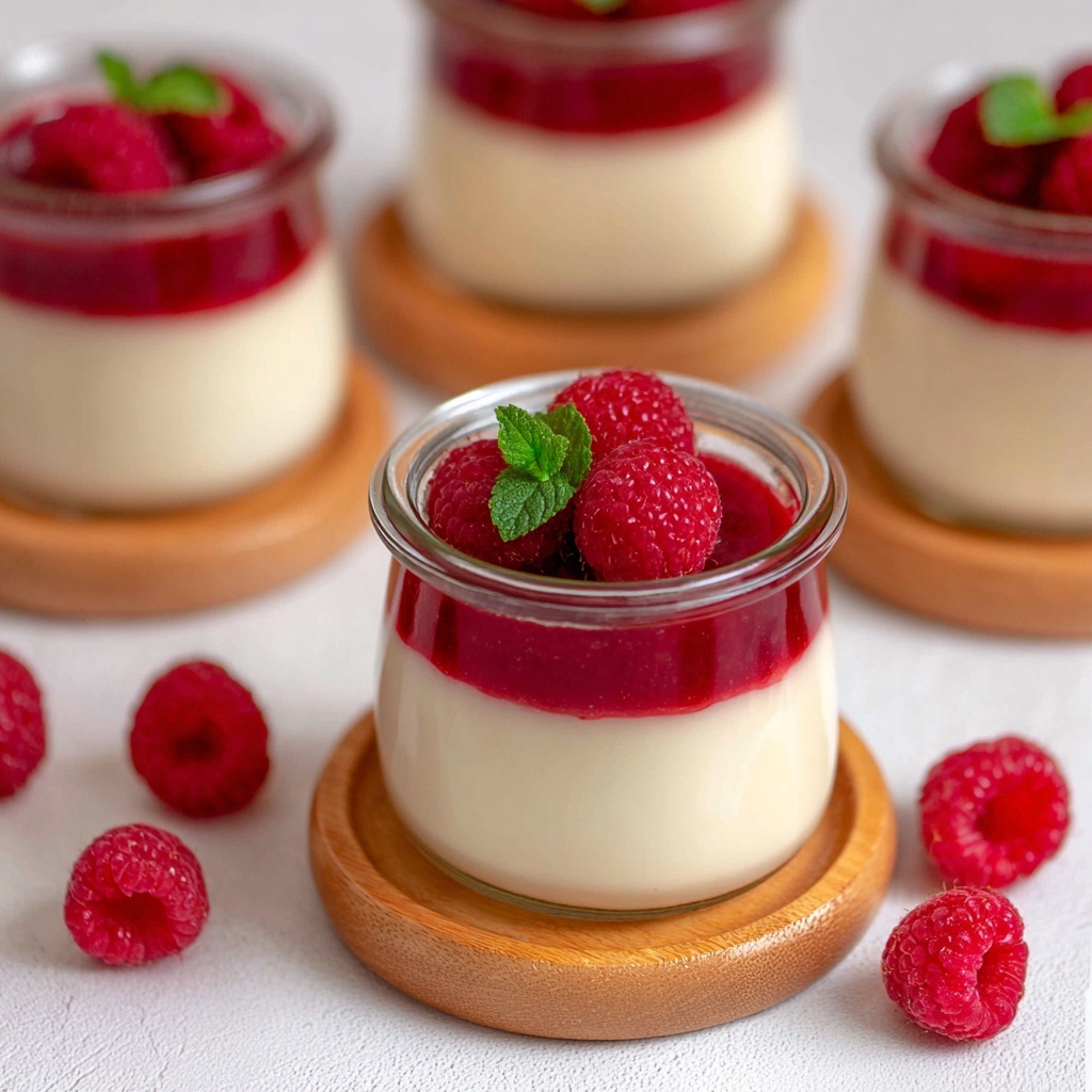 For a visually stunning and flavorful finish, spoon the luscious macerated raspberries right on top of each panna cotta. Add a few fresh mint leaves or a thin slice of blood orange zest for an elegant touch that also brightens every bite.