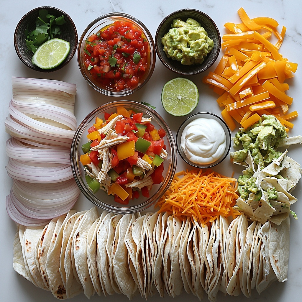 The ingredients for this recipe are simple but incredibly impactful. Each brings color, texture, and that perfect blend of flavors that make the Blooming Chicken Quesadilla Ring Recipe so memorable. From the melty cheeses to the fresh lime juice and savory taco seasoning, every element plays an essential role in creating those luscious bites you’ll keep reaching for.