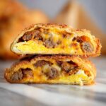 This Breakfast Stromboli is a savory, cheesy roll filled with soft scrambled eggs, flavorful pork sausage, and melted Colby Jack cheese all wrapped in thin, crispy pizza dough. Perfect for a hearty breakfast or brunch, it bakes to golden perfection and is delightful served warm with optional dipping sauces like sausage gravy, salsa, or marinara.