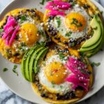 - Assemble tostadas: Spread the avocado mixture generously onto each tortilla with melted cheese and beans. Top each with a fried egg. Garnish with pickled jalapeños, pickled red onions, and your favorite salsa. Serve immediately to enjoy the crispy, fresh, and creamy combination.