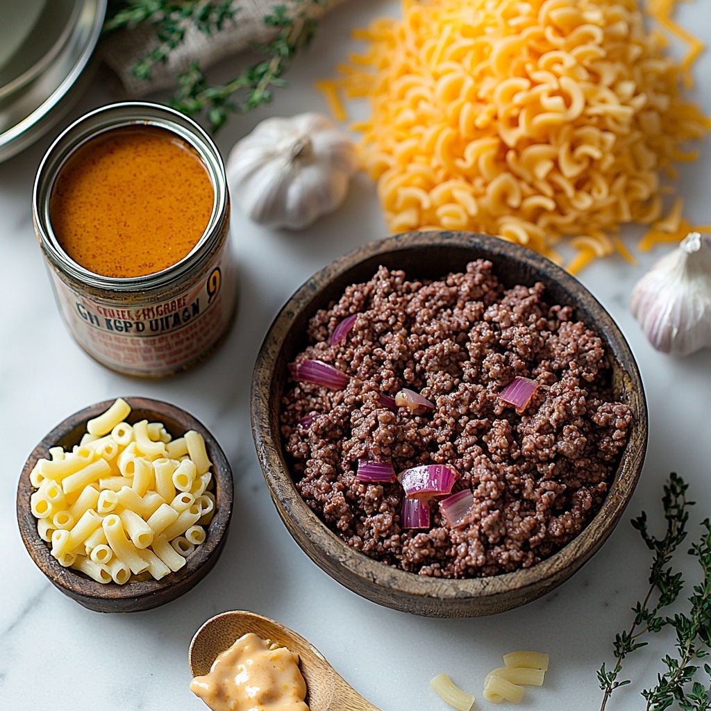 The ingredients for this recipe are wonderfully simple and each plays a key role in delivering that classic homemade taste and wonderful texture. From the savory ground beef to the creamy cheese and tender pasta, every element works together perfectly to create a warm, satisfying skillet meal.
