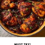 Transfer the chicken along with the marinade into a large skillet or Dutch oven. Bring everything to a lively boil over medium-high heat to start melding the flavors. Then turn the heat down to low, cover it with a lid, and let it simmer gently for 25 to 30 minutes. Don’t forget to flip the chicken halfway through so the marinade penetrates evenly and cooks the chicken thoroughly.