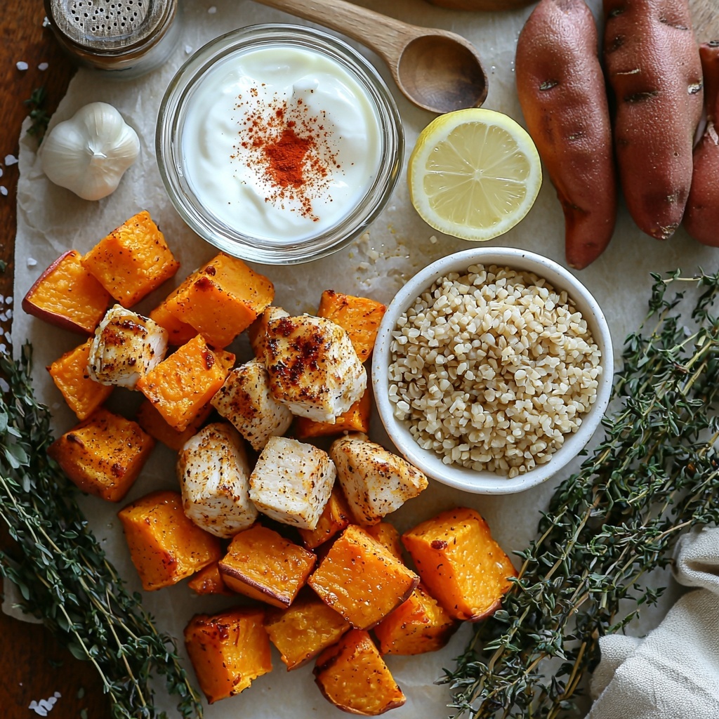Gathering your ingredients for this recipe is straightforward and rewarding. Each component plays an essential role, from the vibrant sweetness of the potatoes to the smoky spices on the chicken, making every mouthful a perfect harmony of texture and flavor.
