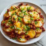 This Chili Cheese Potato Skillet is a comforting and hearty meal perfect for any day of the week. Crispy diced potatoes are cooked to golden perfection, then combined with flavorful chili and melted cheese, creating a satisfying one-pan dish garnished with fresh green onions for a pop of color and freshness.