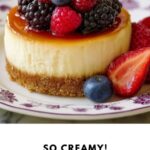 - Add Toppings: Before serving, top cheesecake with fresh mixed berries. Drizzle with maple syrup or honey and garnish with fresh mint leaves.