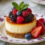 - Add Toppings: Before serving, top cheesecake with fresh mixed berries. Drizzle with maple syrup or honey and garnish with fresh mint leaves.