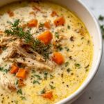 Creamy Marry Me Chicken Soup is a rich and comforting dish featuring tender seared chicken simmered in a flavorful broth with sun-dried tomatoes, garlic, and Italian herbs. Enriched with heavy cream and Parmesan cheese, this luxurious soup is perfect for cozy dinners and is sure to impress with its creamy texture and delightful taste.