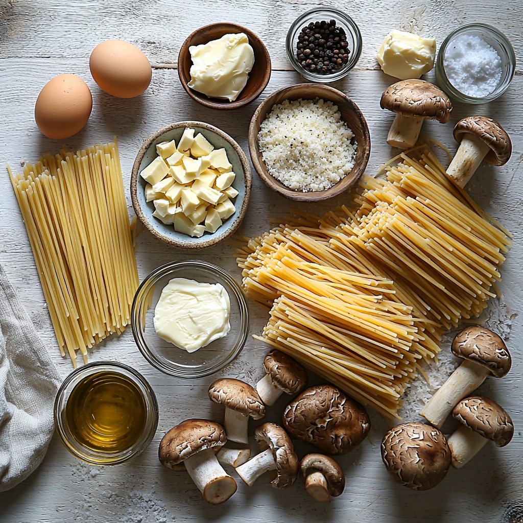 This part is all about setting yourself up for success. Slice your mushrooms evenly to ensure they cook uniformly, mince that garlic finely so it distributes flavor just right, and grate your cheeses fresh for maximum creaminess. Separating the egg yolks into a bowl and blending with one whole egg, cheese, and freshly ground black pepper will give you the luscious sauce base that clings perfectly to the pasta.