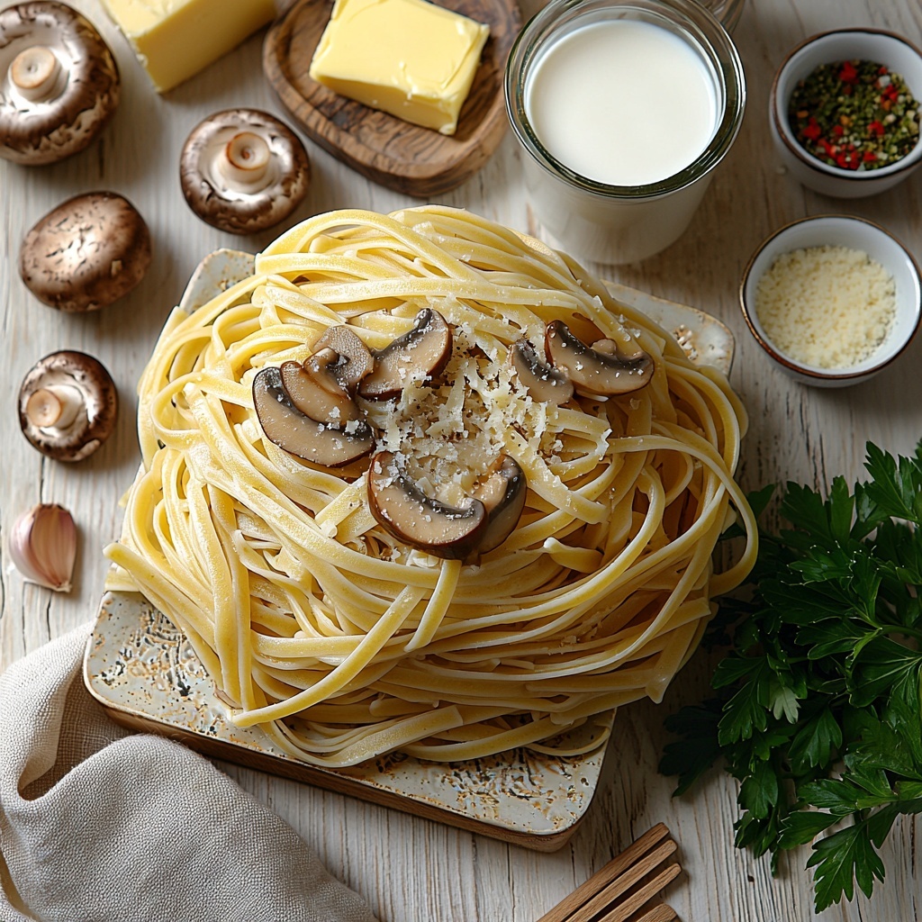 Serve your creamy mushroom pasta in shallow bowls to showcase the creamy sauce and mushrooms elegantly. For a special occasion, garnish with edible flowers or a drizzle of truffle oil to elevate the earthy flavors into something truly luxurious. A sprinkle of toasted pine nuts adds a delightful crunch and nutty dimension to the dish.