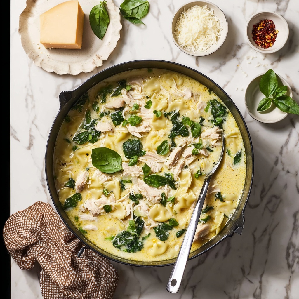Creamy White Lasagna Soup is a comforting and hearty Italian-inspired dish combining tender chicken, broken lasagna noodles, fresh spinach, and a rich, creamy broth flavored with Parmesan and ricotta cheeses. This easy stovetop soup offers all the cozy flavors of traditional lasagna in a quick and satisfying bowl.