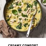 To reheat, thaw frozen components in the refrigerator overnight. Warm the broth and chicken gently on the stove, then add the noodles and spinach last to avoid overcooking. Stir occasionally and add a splash of milk or stock if the soup feels too thick after reheating.