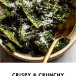 Immediately after removing the kale from the oven, sprinkle it with grated parmesan cheese or nutritional yeast. The heat from the crispy kale slightly melts the cheese, sealing in that fabulous umami flavor that takes this simple snack over the top.