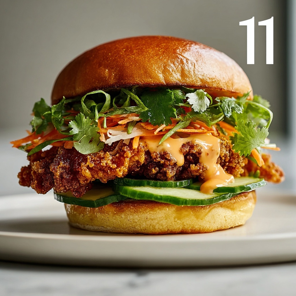 Fresh herbs like cilantro and mint are more than decoration—they add sharpness and depth that balance the rich fried chicken. Pickled vegetables provide essential acidity and crunch, creating layers of texture that make each bite exciting and well-rounded. Don’t skip these garnishes, as they elevate the sandwich from good to unforgettable.