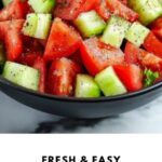 - Combine Salad: Toss the chopped cucumbers and tomatoes together in a large bowl. Pour the dressing over the vegetables and toss everything thoroughly to coat all pieces evenly.
