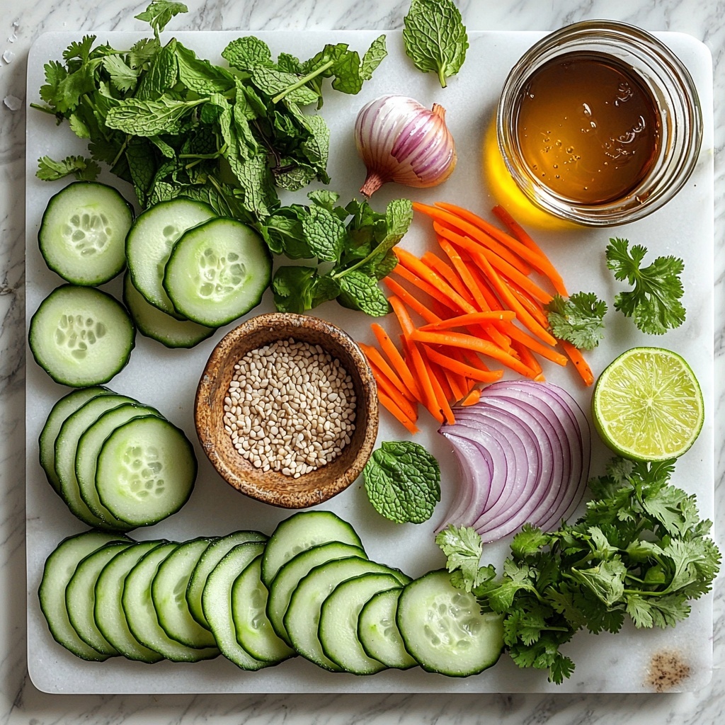 Start by washing and drying your cucumbers thoroughly. If their skins feel thick or waxy, peeling them in strips can improve texture, but it’s fine to leave the peel on for added color and nutrients. Slice them thinly into rounds or half-moons — a sharp knife or mandoline slicer works wonders here. To keep the salad crisp and not watery, sprinkle the cucumber slices with a little salt and let them sit in a colander for 10 to 15 minutes, which pulls out excess moisture.