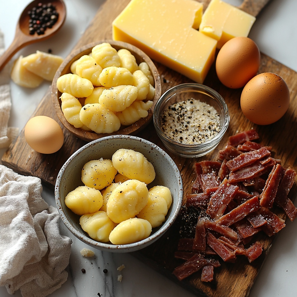 - Potato Gnocchi: Choose fresh or quality store-bought gnocchi; its pillowy texture is perfect for absorbing the creamy carbonara sauce.
