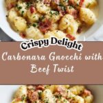 Diving into Carbonara with Gnocchi: A Rich and Crispy Beef Twist Recipe is a delightful reimagining of the classic Italian favorite that brings an exciting texture and flavor combination to your dinner table. This recipe takes pillowy gnocchi, infuses it with a luscious, creamy carbonara sauce made from eggs and Pecorino Romano, and elevates the whole experience with crispy, savory beef instead of the traditional pork. Each bite surprises with a perfect harmony of richness, crispiness, and a peppery kick that will have you craving seconds before you finish your first plate.