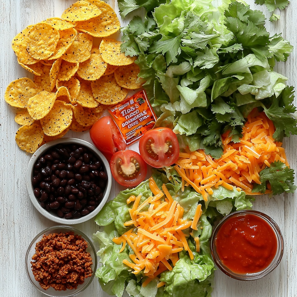 The magic of this Doritos Taco Salad Recipe lies in its simple, fresh ingredients that come together in perfect harmony. Each component adds a unique texture or burst of flavor, making the salad a colorful, tasty feast with every bite.