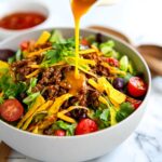 This Doritos Taco Salad is a quick and flavorful Tex-Mex inspired dish combining seasoned ground beef, fresh vegetables, black beans, shredded cheddar cheese, and crunchy nacho cheese Doritos, all tossed with Catalina or your favorite salad dressing. Perfect for a casual lunch or dinner, this salad offers a satisfying crunch and bold flavors in just 20 minutes.
