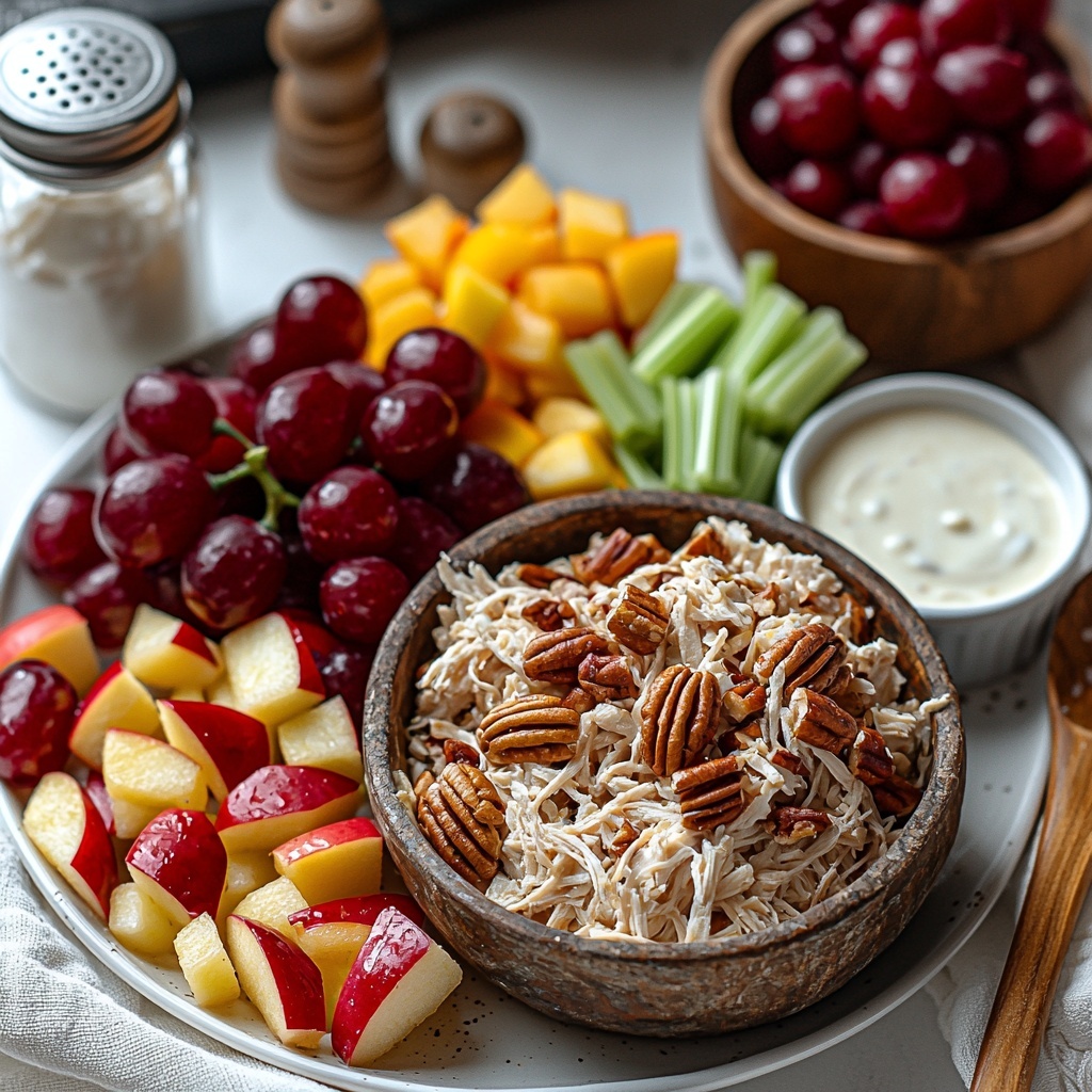Gathering the right ingredients is key to making the Fancy Nancy Chicken Salad Recipe a standout. Each element plays a unique role, from the crunchy apples to the creamy dressing, creating a medley of taste and texture that’s simply unbeatable.