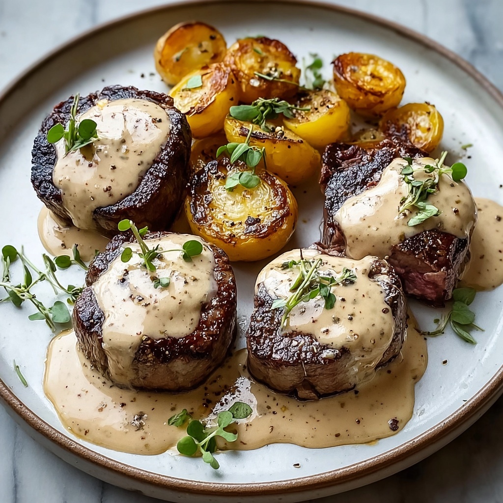 Filet Mignon with Creamy Peppercorn Sauce Recipe