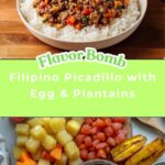 This Filipino Picadillo recipe delivers a hearty and flavorful ground beef and pork stew simmered with potatoes, carrots, tomatoes, and a balance of sweet and savory seasonings. Served over fluffy rice and topped with a fried egg, it’s accompanied by savory fried plantains for a perfect combination of textures and tastes. Ideal for a comforting family meal rich in classic Filipino flavors.