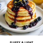 Learn how to make fluffy, light pancakes paired with a homemade blueberry syrup that enhances every bite with sweet and tangy flavors. This recipe uses buttermilk and whipped egg whites for extra fluffiness and fresh lemon zest to brighten the taste. Perfect for a delightful breakfast or brunch for four people.