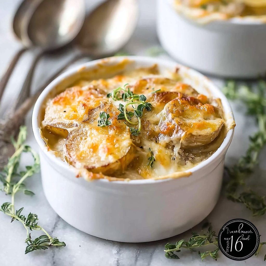 If you want to impress, serve the soup in individual oven-safe crocks with a ramekin of extra melted cheese on the side for dipping crusty bread. For a rustic touch, use mini cast-iron pots for single servings instead of traditional bowls.