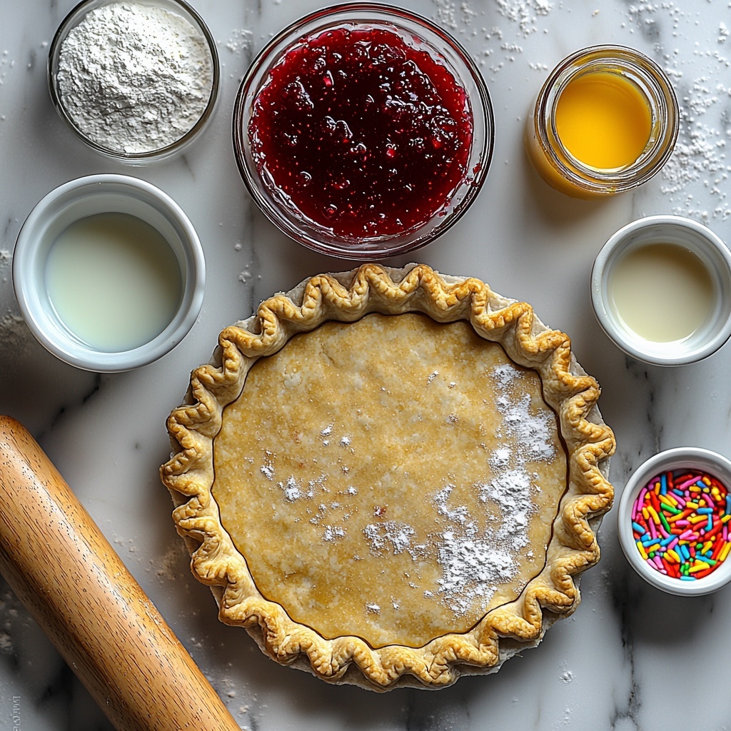 Gathering simple, pantry-friendly ingredients is half the fun with this Giant Frosted Strawberry Pop Tart Recipe. Each component plays a vital role, bringing texture, flavor, or that classic nostalgic look that makes pop tarts so beloved.