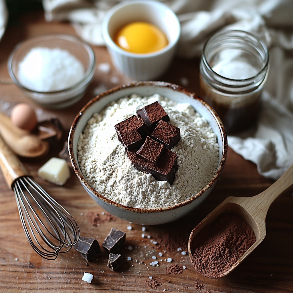 - Mix Dry Ingredients: In a large bowl, whisk together the gluten-free flour, sifted cocoa powder, cornstarch, tapioca starch, xanthan gum (if using), coconut sugar, kosher salt, and espresso powder to ensure an even distribution and eliminate lumps.