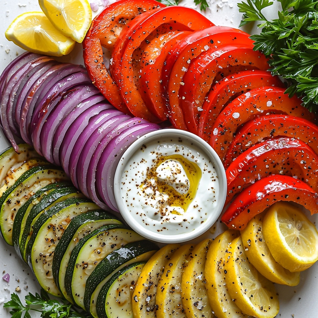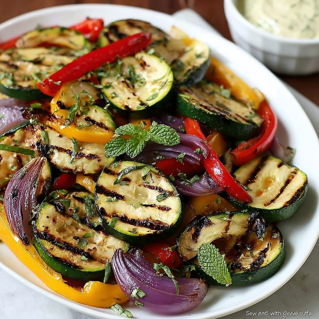 Brighten your platter with fresh parsley or cilantro leaves scattered across the top. These herbs add a pop of green and crisp freshness that balances the smokiness of the grilled vegetables. Don’t forget generous lemon wedges, which guests can squeeze over to add an uplifting citrus zing.