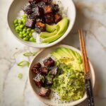 - Assemble the Dish: Serve the sticky crispy tofu over the cooked rice, alongside the edamame and slices of ripe avocado for a balanced and colorful meal.
