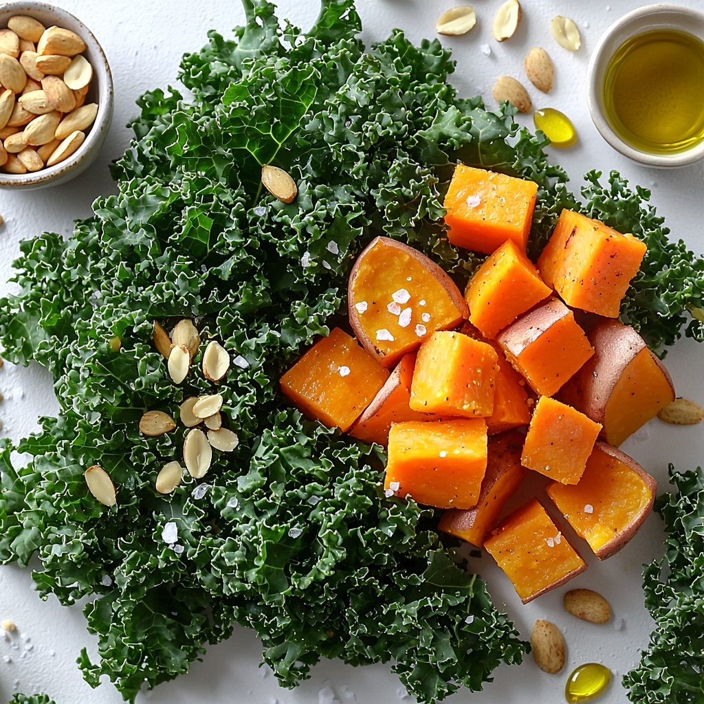 Start by washing the kale thoroughly and removing the tough stems; these can be discarded or saved for smoothies. Peel and cube the sweet potatoes into even pieces to ensure they roast evenly. This initial prep sets you up for a smooth cooking process and balanced textures.
