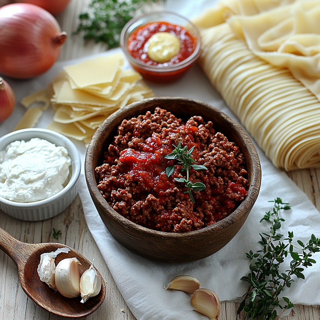• Lean ground beef: Provides a hearty base with rich, savory flavor that’s essential for the meat sauce.