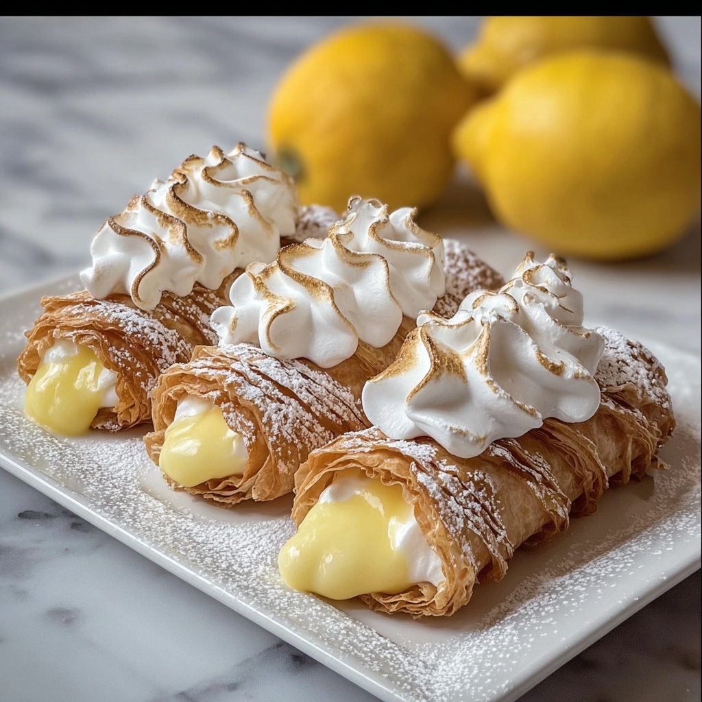 Lemon Meringue Pie Cannoli combine the zesty brightness of lemon curd and creamy ricotta with a fluffy, toasted meringue topping nestled inside crisp cannoli shells. This delightful no-bake dessert offers a unique twist on the classic Italian cannoli, enhanced by the sweet and tart flavors of lemon meringue pie, perfect for gatherings or a sophisticated treat.