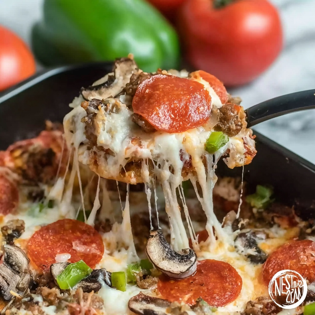 For a crowd-pleaser, serve the casserole in individual ramekins or small cast iron skillets, allowing each guest their own personal cheesy pizza experience. You can also garnish each serving with a few extra pepperoni slices or a dollop of sour cream to elevate the presentation.