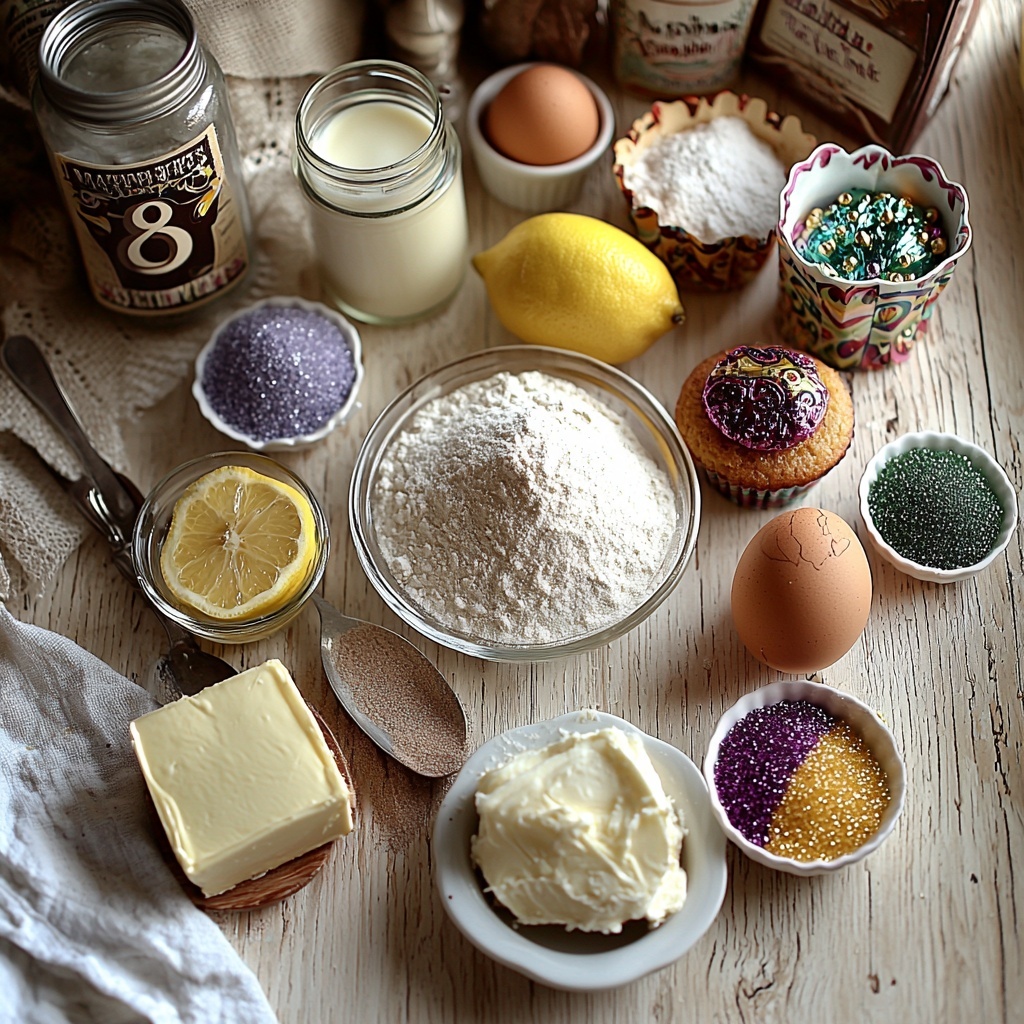 Gathering the right ingredients is the first step to nailing this Mardi Gras favorite. Each component is carefully chosen to create the perfect texture, taste, and authentic feel of a King Cake in cupcake form. From the tender crumb to the rich cinnamon swirl and the creamy, tangy frosting, these simple ingredients work harmoniously to deliver a festive treat.