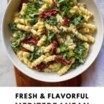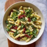 This Mediterranean-inspired Campanelle Pasta Salad features tender kale, tangy feta, savory sundried tomatoes, and a bright basil and white balsamic dressing. It’s a refreshing, nutrient-packed dish that’s perfect for a light lunch or a flavorful side.
