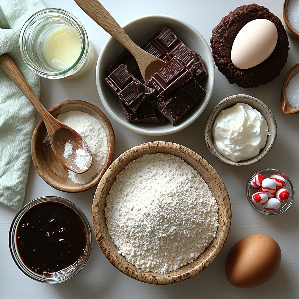Nothing complicated here—just a handful of essential ingredients that work together to create moist, chocolatey cakes and a luscious minty filling with that perfect texture and balance of flavors.