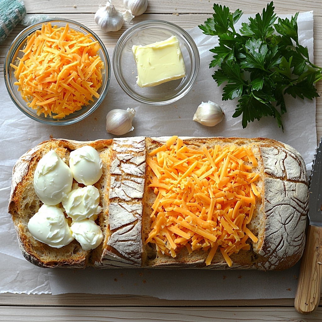 Start by heating your oven to 375°F (190°C). This temperature ensures the bread crisps up beautifully while the cheese melts into a luscious, gooey filling.