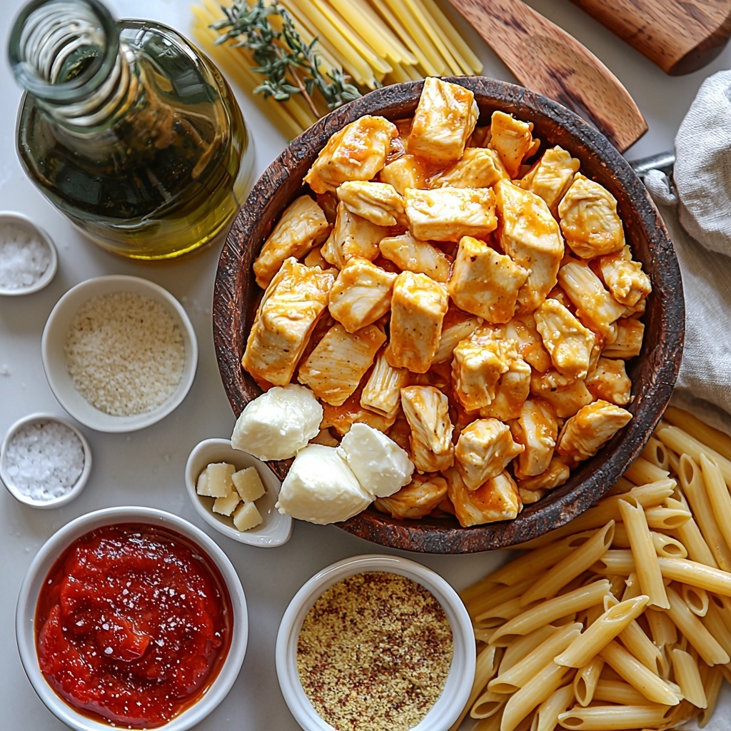Gathering the right ingredients is half the fun and guarantees that delightful balance of flavors and textures. Each element here plays a crucial role, from the tender chicken to the tangy marinara, ensuring this pasta dish is truly unforgettable.
