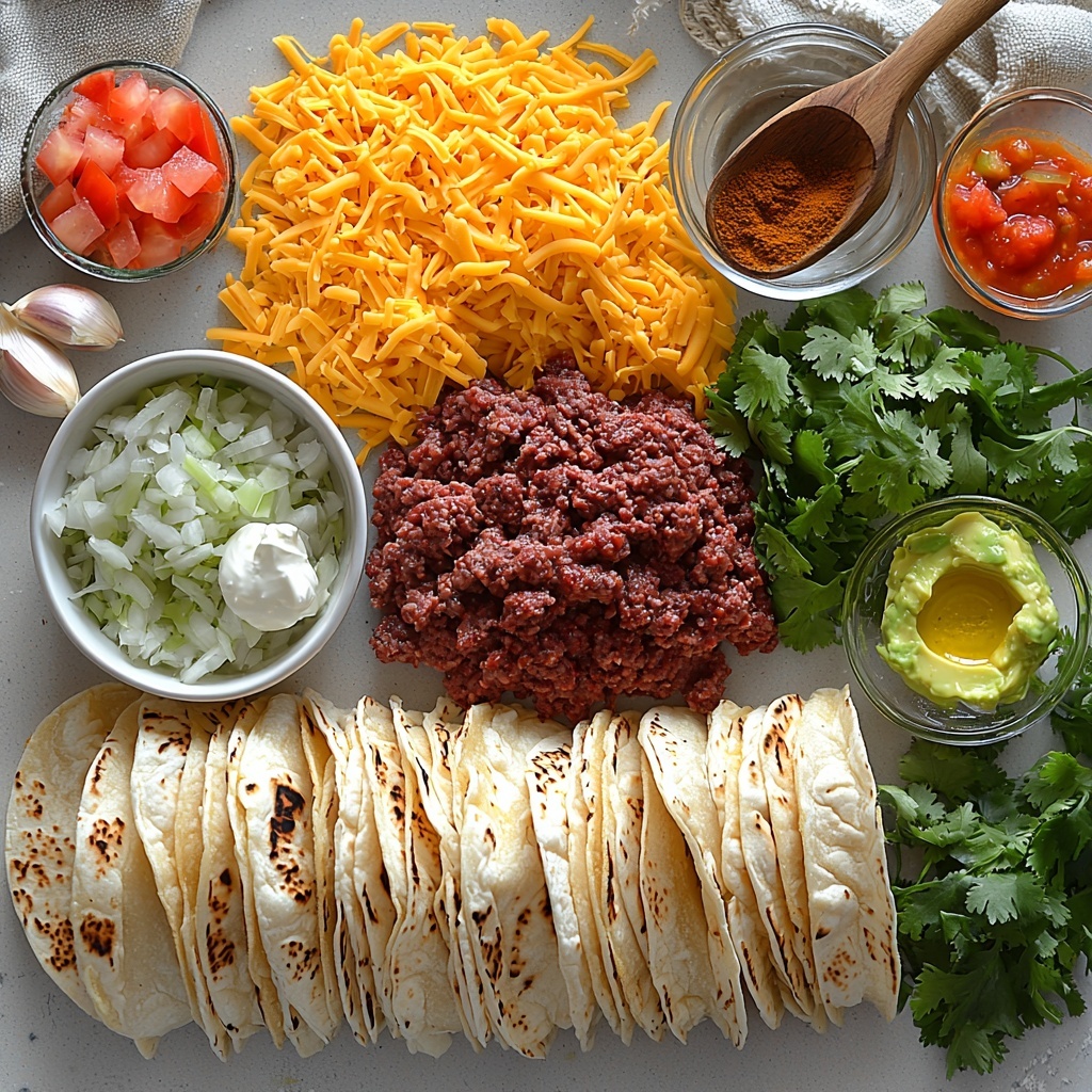 Fresh garnishes elevate your Pan-Fried Beef Tacos: Crispy, Juicy & Irresistible Recipe from tasty to spectacular. Think crunchy shredded lettuce, juicy tomatoes, creamy avocado or guacamole, cool sour cream, and a sprinkle of fresh cilantro. These add freshness and balance, rounding out the deep flavors of the beef and cheese.