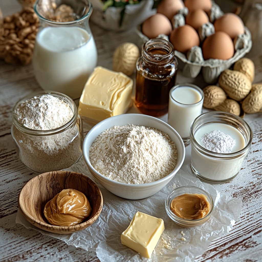 This Peanut Butter Cake Recipe calls for everyday pantry staples that combine beautifully to create the perfect texture, flavor, and moisture. Each ingredient plays its part in making sure the cake is fluffy and filled with that classic peanut butter richness you crave.